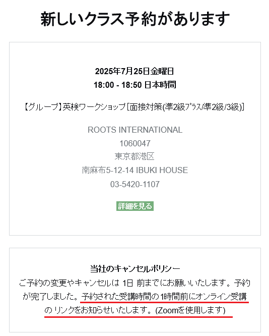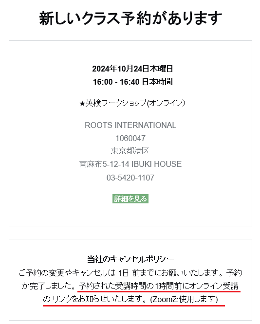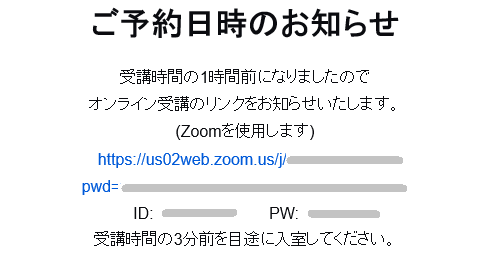 「Zoom教室」のURLは、受講日時の1時間前にメールでお知らせします。