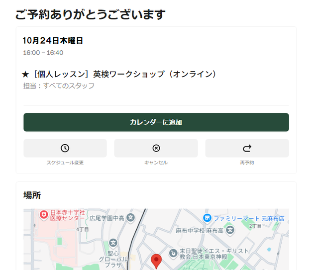英検サポートの各ページに表示されています「予約ページはこちら」ボタン