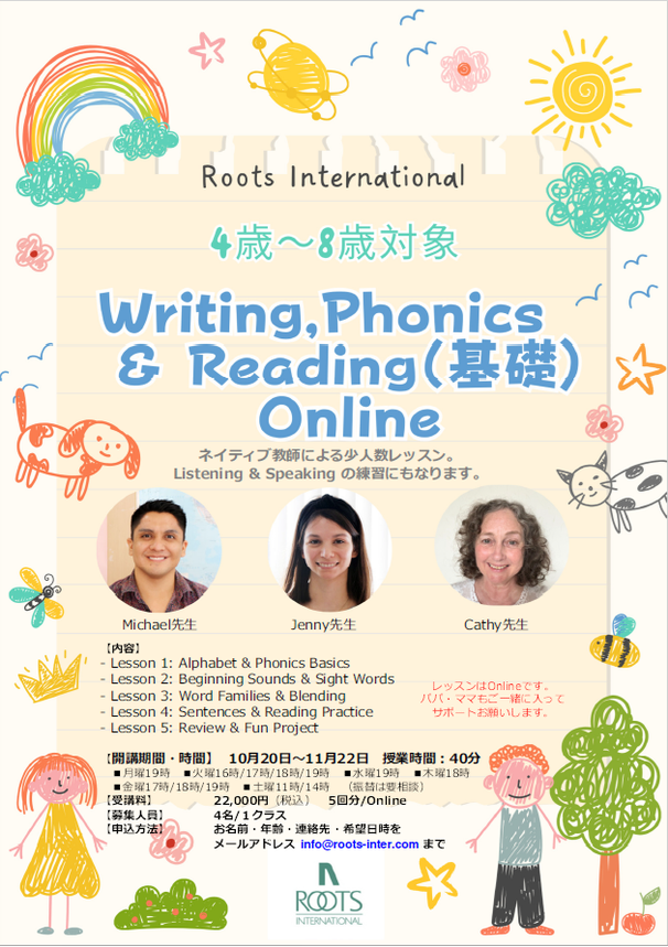 「Writing, Phonics & Reading(基礎)」をオンラインで開講します!